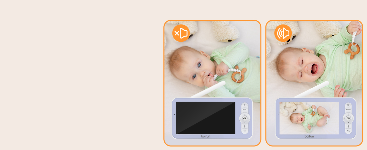 【Motion Detection, Scream, Noise and Custom Area】Our baby phone can intelligently distinguish crying from other noises and will send you alerts on the phone and monitor while detecting dangerous movements (such as escaping from the crib). In addition, you can customize zone monitoring for targeted monitoring.