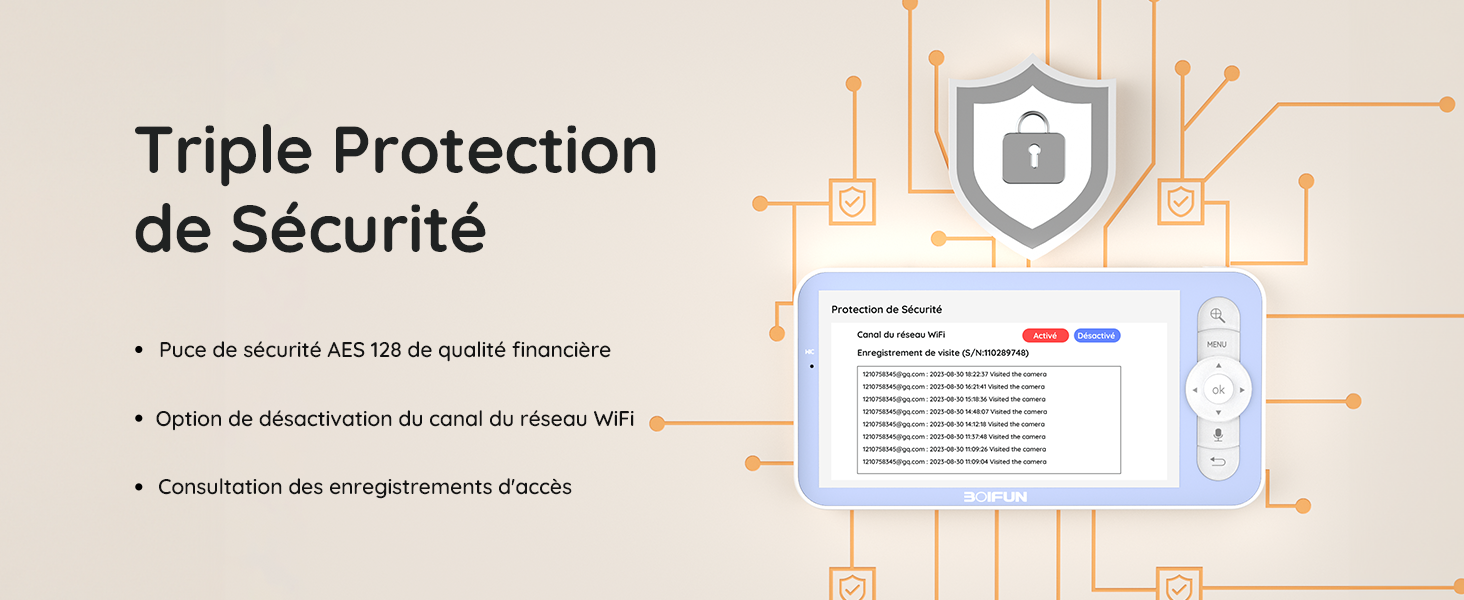 【Privacy Protection】 Using advanced AES128 encryption technology, our video baby monitor protects your family's privacy with military-grade security that ensures confidential moments remain exclusive to you.